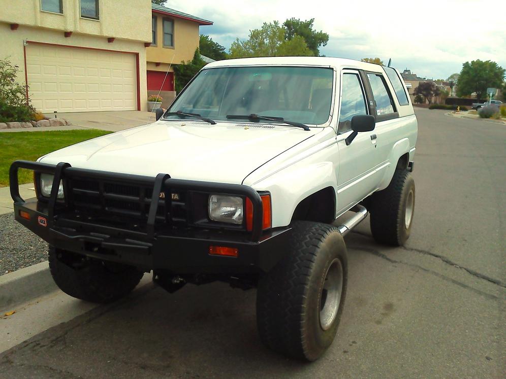 she is a 1985 toyota 4runner with a 22re. The engine is mostly stock and hardly any modifications besides a K&N air filter. I currently have a Flowmaster Super 40 muffler that gives a little more sound to her. She has a 4 inch suspension lift on blocks with Rancho 9000 shocks. It currently has Furtura Dakota RVT tires and American Racing wheels that are unknown to me. I'm wanting to do more to the engine performance wise but i dont know where to start. If you all have any suggestions on what to do next that would be awesome