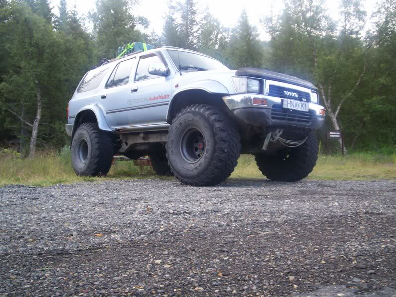 Hello im new here. I am from Iceland and i am proud owner of 1990 4wd 4runner 3.0 V6 with 5 speed manual gearbox [8D]The car has been modifyd allot for offroad driveing in the highlands , glaciers and the winter snow in Iceland.There have been alot of work raise chassis andundercarriagefor the 38"x 14" wheels and tires fit.I had to change the gear ratioand one and on, Been allot of work :eek: Buti am satisfied how she turned out. Been all overand nothing stops her ;)