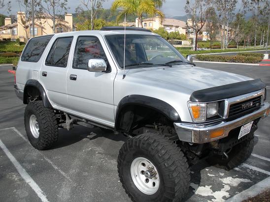 90' 4Runner 2nd generation 3.0 V6 4X4 5 speed manual transmission. 6 inch Pro comp Suspension lift, 3 inch Body lift, Downey 26mm heavyduty Tortion bars, Goodyear MTR 35x12.50x15 on Micky Thompson classic II. Warn manual hubs. Magnaflow. Kenwood stereo, speakers and 6 CD changer in dash. Sun roof. Auto lock, window. Alarm. Well maintained. Mobil 1 engine oil only, Tires have been rotated, balanced and aligned every 4k. Additional weld on weak points. Recently tuned up and all the sensors and throttle body etc are cleaned. Head gasket, valve job, starter, battery, master cylinder, radiator, fan, brake booster, distributor, mass air flow sensor, coil, spark plugs, plug wires, hoses.....and more. All have been replaced in last 3 years with papers. Clean in/out. Motor has 212.690 miles but runs very smooth and responsive. test drive and see. want to keep it but need bigger truck for towing. have a below front bumper cover (not shown)$3800 o.b.o. Thanks!